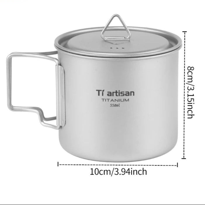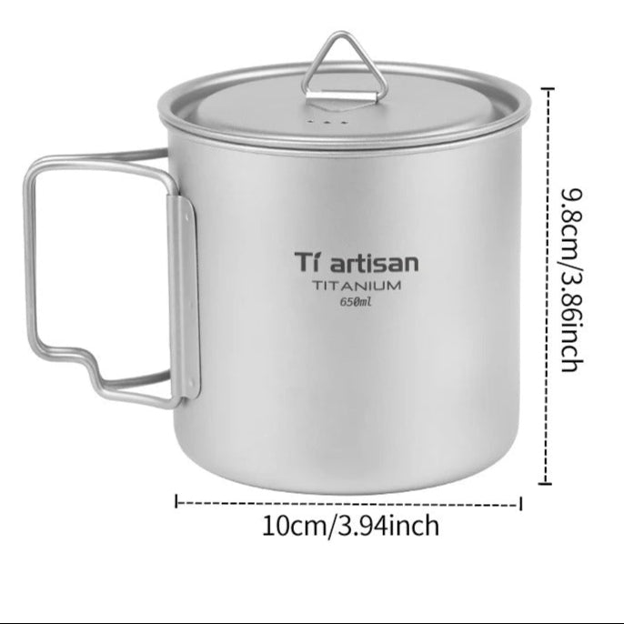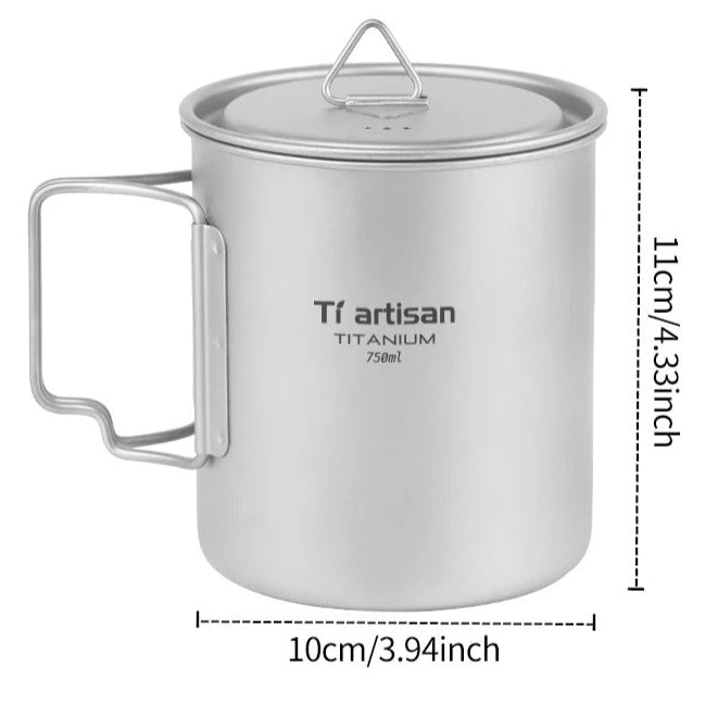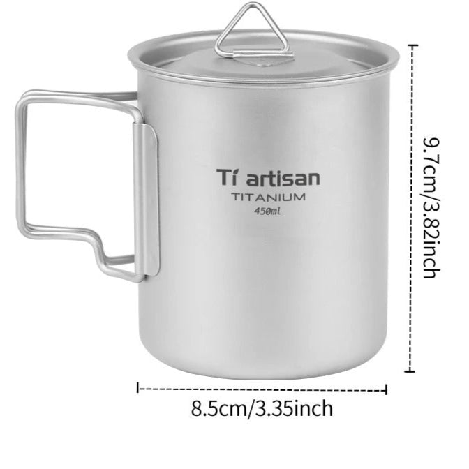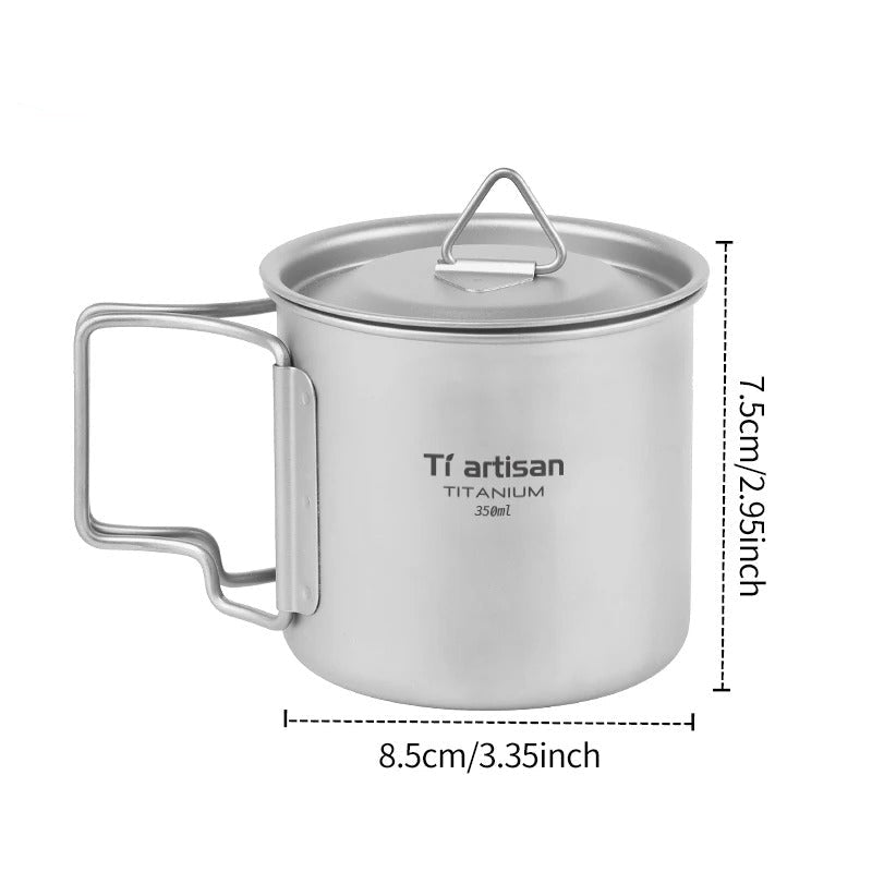 כוס קמפינג מטיטניום קל משקל עם ידית מתקפלת